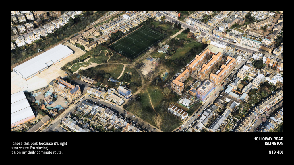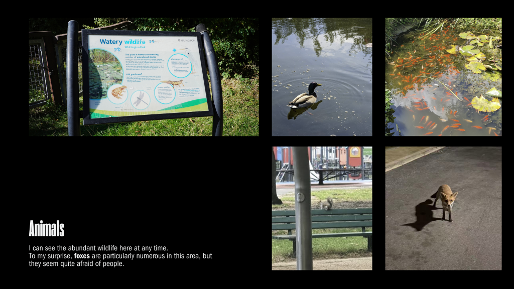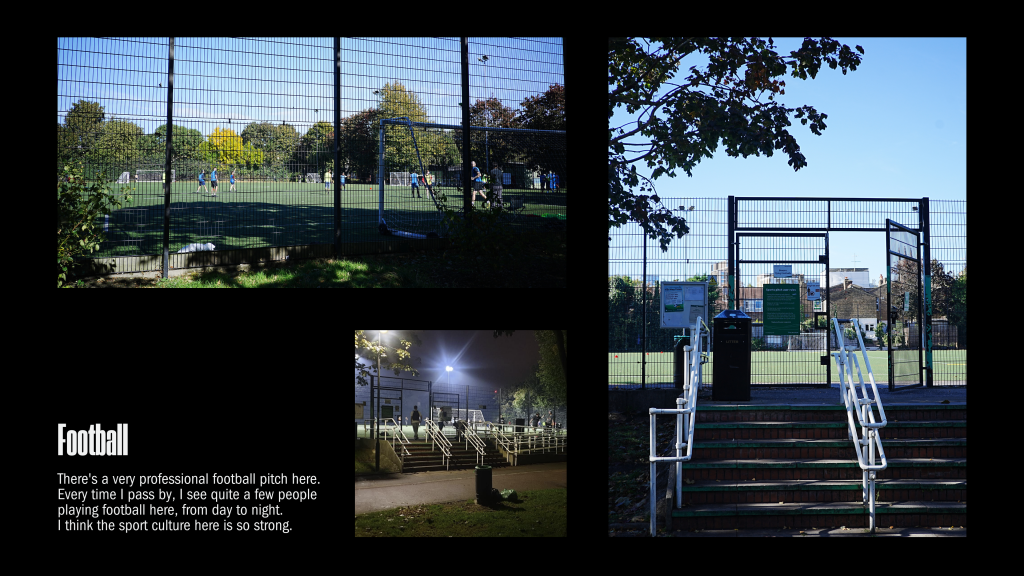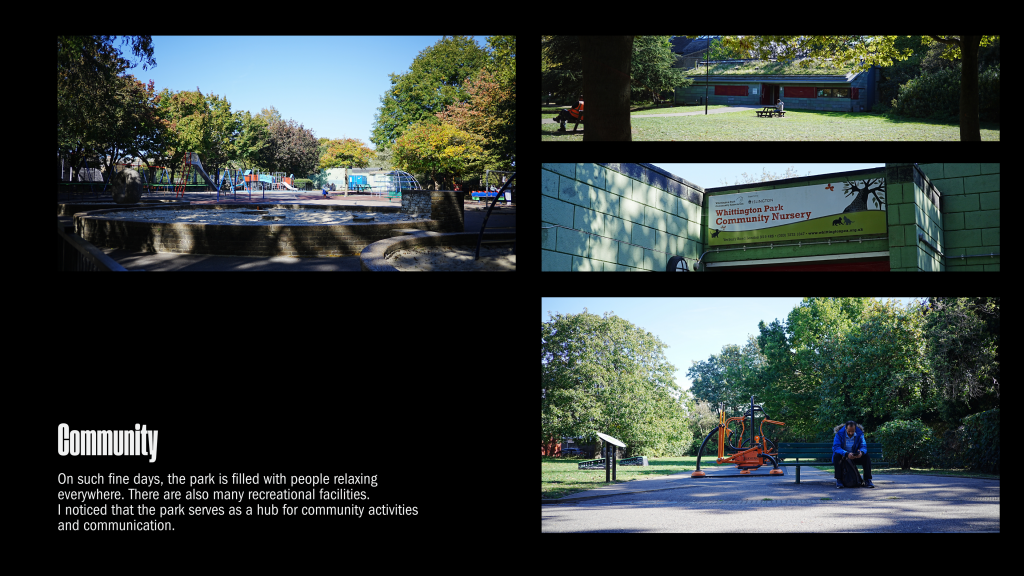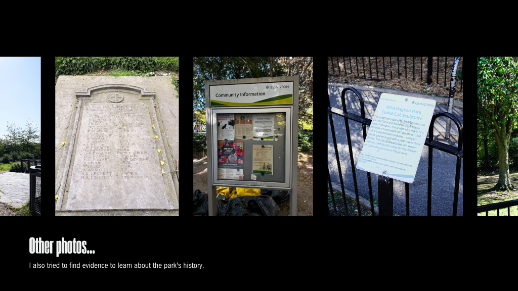 As an international student, I live near Tufnell Park in Islington. For me, every time I take public transportation to the station, I pass through several parks. Among them, Whitting Park is the largest, so I chose it as my initial site for investigation.